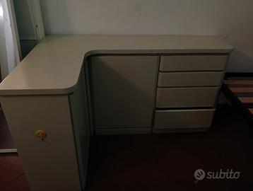 Mobiletto angolare beige di legno con alcune ammaccature vendesi ad euro 50 misure 87. 34. 137. H 75.