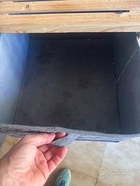 Mobiletto in legno da stringere le viti con cassetti in stoffa e cartone interno