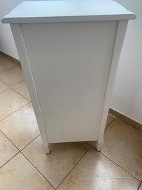 Mobiletto in legno con 6 cassetti, color bianco stile shabby chic.