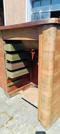 vendo mobiletto anni 50per macchina da cucire, appartenuto mia nonna movimento meccanico a pedale con porta spolette senza macchina da cucire