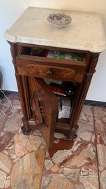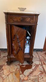 Mobiletto antico della meta dell’800, con intarsi a mano, ripiano in marmo, antina con serratura funzionante e casseto; dimensioni: h 85 p 41 l 40, in ortimo stato. Il mobile si trova a Piacenza ma posso consegnare anche a Milano