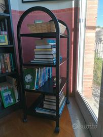 Piccolo scaffale in ferro nero con ruote e 4 ripiani