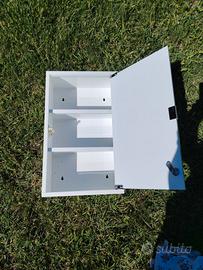 Mobiletto porta medicine in metallo con porta in vetro e apertura push con chiave e 2 ripiani. Molto bello e originale, 30x 50 cm