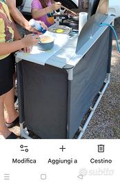 mobile cucina da campeggio/vanlife Vega Midland con lavello integrato. misure aperto cm 121x48xh108 misure chiuso cm 121x12,5xh41. peso 9 kg. sacca inclusa. bello usato una sola volta. nessun difetto.