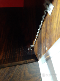 Vendo mobiletto, altezza 144,5 cm, lunghezza 87, profondità in basso 41, in alti 21. Una catenella ha il gancio da sistemare ma sta comunque su con una. Se necessario invio altre foto. In passato è stata utilizzata la parte superiore aperta come libreria. No spedizione