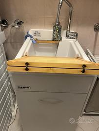 Mobiletto lavandino miscelatore e sifone Colavene; pensile con specchio e ante contenitore; mobiletto porta panni - vendo tutto per cambio bagno e trasloco
