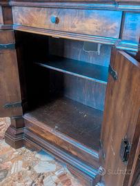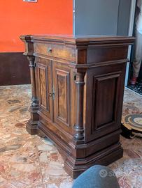 Mobiletto multiuso in legno massello utilizzabile da ingresso, corridoio, porta tv, piccola credenza. Un cassetto, due sportelli, ripiano interno. Dim. 80 x 40 h 85 cm. Ritiro in sede trasportabile con ascensore.