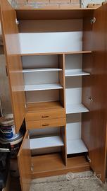 Mobiletto multiuso in truciolare h184 cm l76 cm p35 cm Da ripulire, danneggiato in basso ma ancora in buone condizioni.