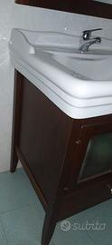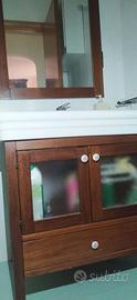 Mobiletto per bagno in legno scuro, con specchiera e 2 lampade. Mobiletto con cassetto e due ante a vetri, lavabo in ceramica ampio. Misure 60x75cm, h 85cm - Specchio 95 x 70 cm (h)