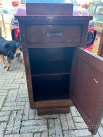 Mobiletto/comodino vintage in legno con piano in marmo. Dotato di cassetto e anta con ripiano interno, ideale come comodino, mobile da ingresso o bagno. Stile classico, solido e funzionale. Condizioni come da foto, con normali segni del tempo. Prezzo trattabile, no perditempo. Non spedisco.