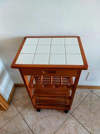 Mobiletto porta bottiglie in ciliegio e cermica