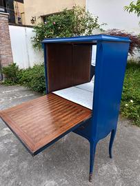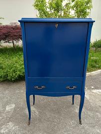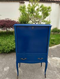 mobile porta liquori stile barocco restauro, colore blu elettrico. gambe con rifiniture in ottone condizioni perfette