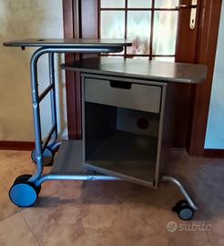 Mobiletto porta PC con cassetto colore grigio. Misure h 85 cm, 96 x 46 cm. Ruote.