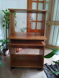 Vendo mobiletto per poggiare PC, Stampante e TV con porta tastiera scorrevole e rotelle. Colore noce chiaro, resistente e in perfette condizioni. Misure: 0,70 m lunghezza 1,20 m altezza 0,55 m profondità