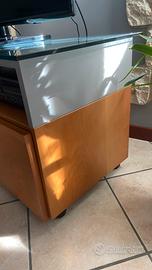 Vendo elegante mobiletto porta TV in legno naturale, dal design semplice e moderno, con piano superiore in vetro spesso e resistente.