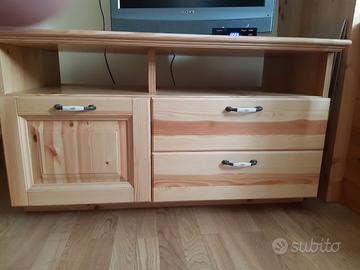 Mobiletto porta TV. Buonissimo stato ,in legno chiaro con 2 cassetti e una antina. Misure 110 X 60 X 60