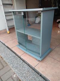 Mobiletto porta TV due ante a vetro con ruote. Dimensioni: larghezza Cm 65 - profondità cm 39 - altezza da terra cm 77.
