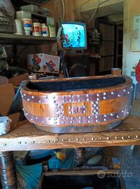 mobiletto a angolo misura 70 x 40 di larghezza altezza 110 legno riciclato colore noce come antico lamine in rame tutto a vite come da foto i vasi si possono fissarli ai mure con tasselli in dotazione prezzo vasi uno 80 euro. mobiletto 200 euro. trattabili non consegno solo a domicilio contattatemi