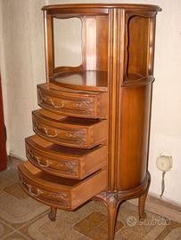 Mobiletto portatelefono ovale in stile con quattro cassetti e vano porta oggetti. dimensioni 37 cm lun x 45 cm larg x 90 cm H