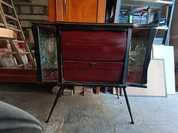 mobiletto Radio Vintage anni 50. Particolare, ha bisogno di un piccolo restauro per portarlo al suo splendore iniziale. Bello anche come mobiletto bar