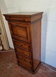 Mobiletto ribaltina e cassetti in legno anni '70