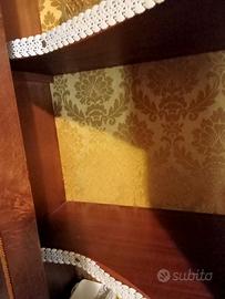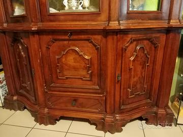 Mobiletto sala da pranzo da 3 ante diviso in due parte in legno lavorato . Lungo 163 cm, largo 47 cm ed è alto 210 cm dotato di 5 chiavette e un cassetto in fondo