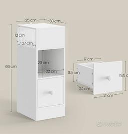 Comodino stretto con 2 scomparti a giorno ed un cassetto 25x30x66. praticamente nuovo,acquistato circa 2 settimane fa. Vendo perché purtroppo le misure non vanno bene per quel che serviva a me.