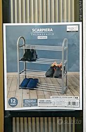 Scarpiera mobiletto con 4 ripiani, 12 posti Nuovo nella sua confezione originale, con telaio tubolare in metallo, facile da assemblare, pratico per il posizionamento di libri, scarpe, piccole piante, ecc ecc.