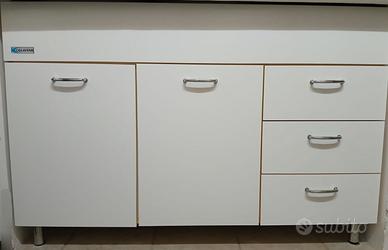 Vendo per inutilizzo un mobiletto bianco completo di stipetto scolapiatti originale Colavene robusto con secchio dell'immondizia incorporato. Misura dello scolapiatti 120 x 55 cm Misura del mobiletto sottolavello 120x 70cm