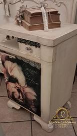 Mobiletto comodino sottoposto a restyling in stile Shabby Chic avorio con decoupage. Misure 47x36 altezza 71cm