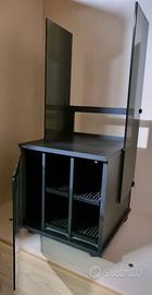 Mobiletto Sony anni '90, in legno h 93cm (50cm al piano), misure interne 39 x 35, per HI-FI modello Sony LBT-V702. Può contenere 64 CD e 20-25 LP. Anta e supporti laterali in vetro color piombo. Modello quasi introvabile e polvere a parte, conservato in ottime condizioni. In regalo porta CD (ne contiene 60) color noce
