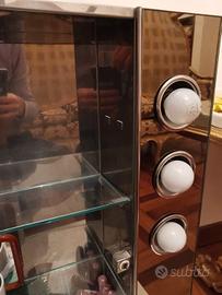 Mobiletto da bagno sopra lavabo anni 80 dal design moderno e sobrio, con struttura in acciaio e fronte a specchio.