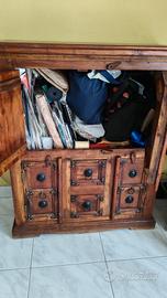 Bellissimo mobiletto in stile etnico con ante e cassetti. Tenuto benissimo, tutte le allacciature e le borchie sono perfette Larghezza 76 x Altezza 90 x Profondità 32 Solo ritiro Ideale anche come porta Tv, vedo per cambio stile arredamento.