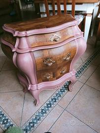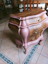 mobiletto legno imassiccio ntarsiato stile Bovolone restaurato