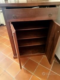 mobiletto in legno comodo x vari usi, anche x scarpe. ha un bel cassetto sopra. Un po' rovinato ma sano, solido.