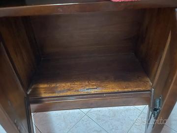 Vendo mobile porta TV - arte povera- di colore noce con ruote ,manca la chiave, serrattura bloccata,( andrebbe cambiata) si chiude una porta con chiavistello interno l’altra rimane socchiusa