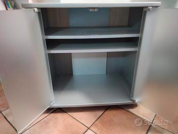 Vendo armadio TV/stereo con ruote. Ante in vetro satinato colore silver. 2 ripiani regolabili in altezza. Qualche ammaccatura esterna come da foto. misure: 78cm x 47 cm altezza comprensiva di ruote 75cm. a disposizione per altre foto.