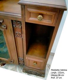 Mobiletto basso con sportello a vetro e cassetti, legno di ciliegio, misure in cm: larghezza 122, profondità 37, altezza 86, buone condizioni, ideale per usi vari, vendo 120 euro.