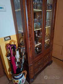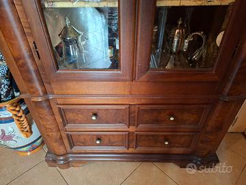 Mobiletto molto curato ottime finiture ed estetica. Vetrina per bicchieri o libri con 2 cassetti per tovaglie ed altro. 4 scomparti con 3 ripiani capienti, robusti e ordinati. Ci sta davvero molta roba, incluso libri o altro. È compatta e sottile, occupa poco spazio e può essere posta in qualsiasi zona della casa.