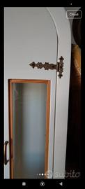 Mobiletto vetrina secrétaire artigianale in legno laccato di bianco.
