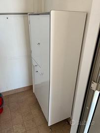 Originale pezzo di modernariato anni '60 con struttura bianca e iconici piedini a spillo in metallo nero. Mobiletto solido e funzionale, completo di pomelli in ceramica originali. Ideale come complemento d'arredo rétro per bagno, cucina o piccoli spazi. Buone condizioni generali. Ritiro in loco (Piacenza)