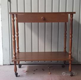 mobiletto in legno con le ruote. per mettere la TV, il fornetto a microonde, soprammobili etc.etc. jl mobile, ha un ripiano di circa 35x45 cm , alto da terra circa 70 cm. sotto ha un cassetto. ha un ripiano anche a circa 10 cm da terra. è in legno , ed è smontabile. in discreto stato come da foto.