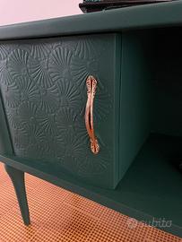 Mobiletto verde bosco con una materic texture e meravigliosi maniglie color oro