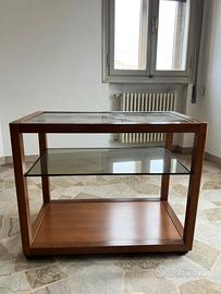 • Ripiani: Dispone di due ampi ripiani in vetro temperato fumè originali e un ripiano base in legno, offrendo molto spazio per esporre oggetti o riviste.
