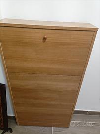 Vendo a stock o singolarmente a pezzo scarpiera 3 ripiani, cassapanca in bambù, tavolino con rotelle a due ripiani porta TV o oggetti, porta oggetti da bagno tre ripiani in bambù. Prezzo a stock € 150,00 o singolarmente prezzo da concordare .