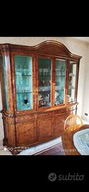 Composta da :credenza con vetrina ,Como’ ,tavolo con 6 sedie per salotto in radica con firma
