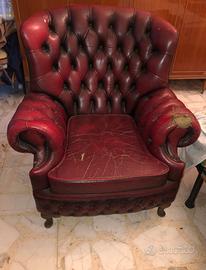 -Poltrona Chesterfield originale in pelle vintage, da riprendere.