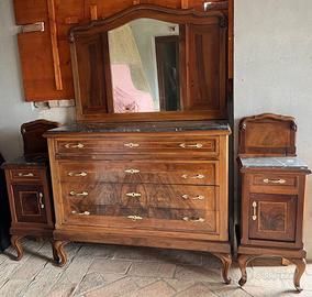 Mobili antichi: 1 comò con specchiera e 2 comodini.