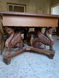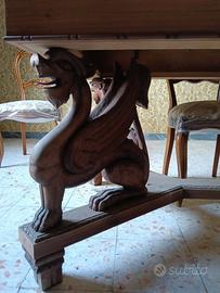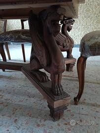 I 4 sostegni sono in legno di noce nazionale massello completamente scolpito a mano da un ebanista del posto.