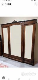 2 comodini 1 armadio 2 cassettiere 1 scrittoio 1 appendiabiti antichi con segni di usura.